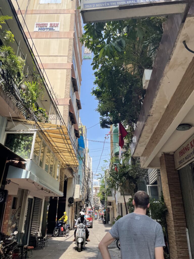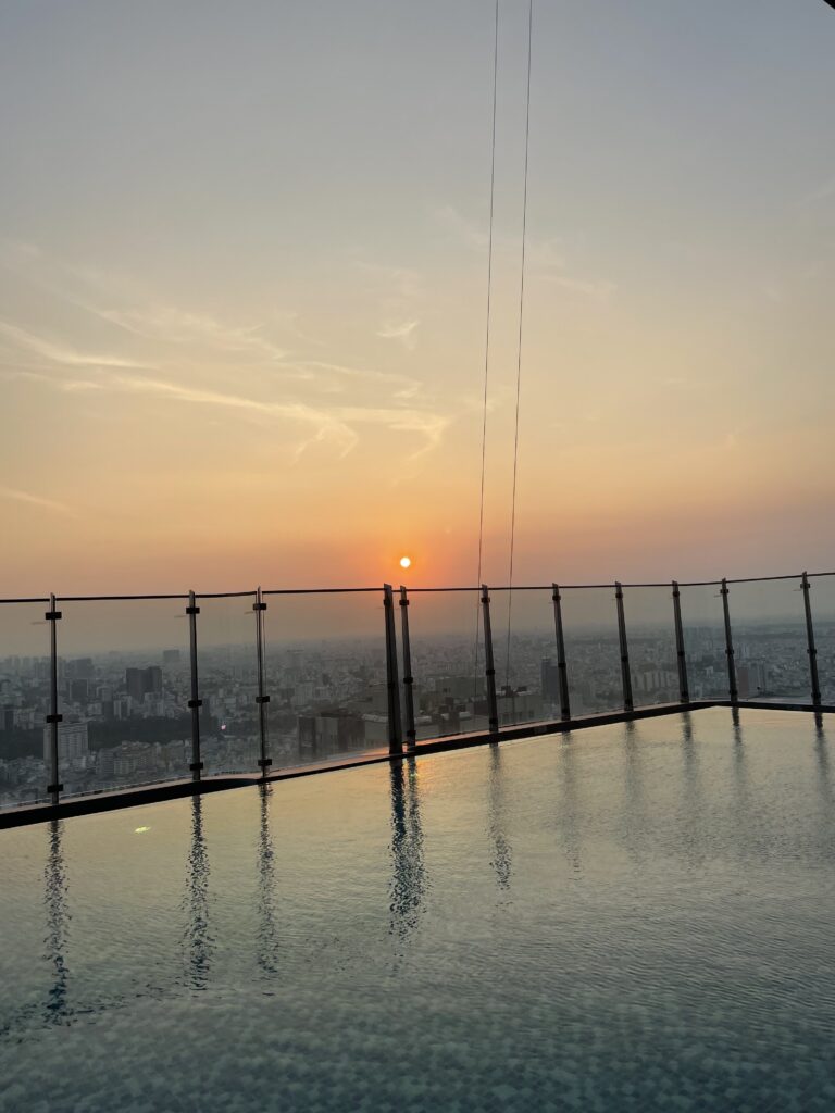 Ein neues Land und neue Eindrücke prasselten auf uns ein als wir morgens um 7 in Saigon angekommen sind. Was als erstes auffiel? Wie viel weniger schwül die Luft ist! Im Vgl. zu Kerala kann man hier atmen 😉 Nach einer Runde Schlaf haben wir uns direkt auf den Weg gemacht um den guten Moritz zu treffen! Zufälligerweise ist er genau am selben Tag auch hier gewesen <3 Er ist mittlerweile Vietnam-Profi, weil er schon einen Monat hier unterwegs war. Das war schön um ein wenig vor Ort von seinen Eindrücken zu hören. Unsere erste Amtshandlung: in ein fettes Hotel im 47. Stock ins Pool schmuggeln (Danke DHL-Robert für die Empfehlung). Niemand hat uns nach unserer Zimmernummer gefragt und wir wurden einfach durch gewunken. Der Aufzug in den siebenundvierzigsten Stock fuhr uns zügig hoch und boom! SoNnENuNtErGaNg über Ho Chi Minh City… so viel Smog haben wir auch noch nicht gesehen. So viel, dass die Sonne nicht am Horizont unterging, sondern hinter dem ganzen Rauch/Abgas/Staub verschwand.